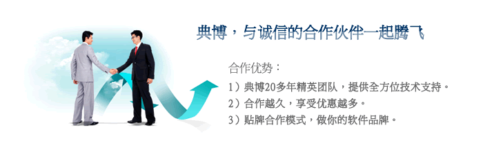 | 典博Timford作为香港优秀的企业软件商,2009年全力向国内发展,我们建立渠道合作体系,提供多种合作方式,让利于合作伙伴以及汇聚资源、成就商机是我们的责任。合作加盟补充了直销模式无法触及的用户,在共赢的基础上,典博提供强有力的技术,支持合作伙伴共同开拓市场、获取商机。目前典博的合作模式有三种(代理分销、项目合作、贴牌合作),每种模式分级别为:核心、金牌、银牌。 |