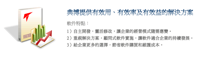 | 典博的套裝軟件是不同于其它公司的,其本身也是定制開發的,只是套裝軟件具有某些行業特性,而且為了便于展示和快速開發,我們可以叫中間產品。所以當客戶購買了套裝軟件后,我們很快就可以制作出客戶所在行業的軟件模型,進而根據公司本身的特點和優勢開發獨特模塊,那么客戶得到的經典套裝就是獨一無二的系統,在行業中也將獨樹一幟,發揮自己的優勢。 |